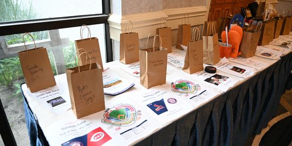 Buy raffle tickets and stuff the bag in front of the item that catches your eye. A winning ticket is drawn at the end of the night from each bag.